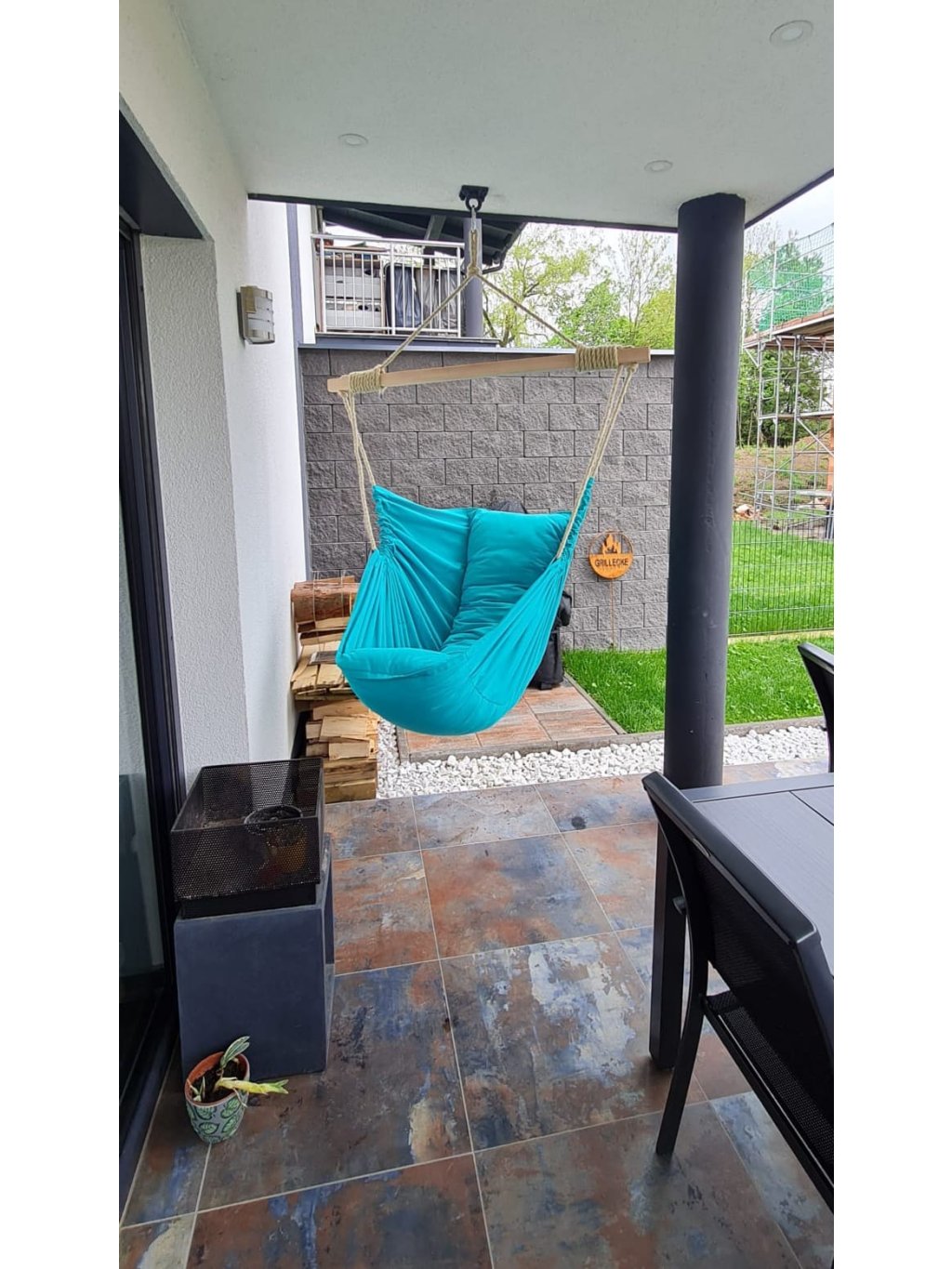 Křeslo lze zavěsit do trámu, na větev, na traverzu - více v článku INSTALACE