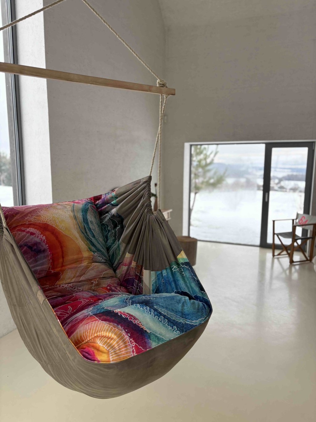 Křeslo lze zavěsit do stropu, do trámu, na větev - více v článku INSTALACE