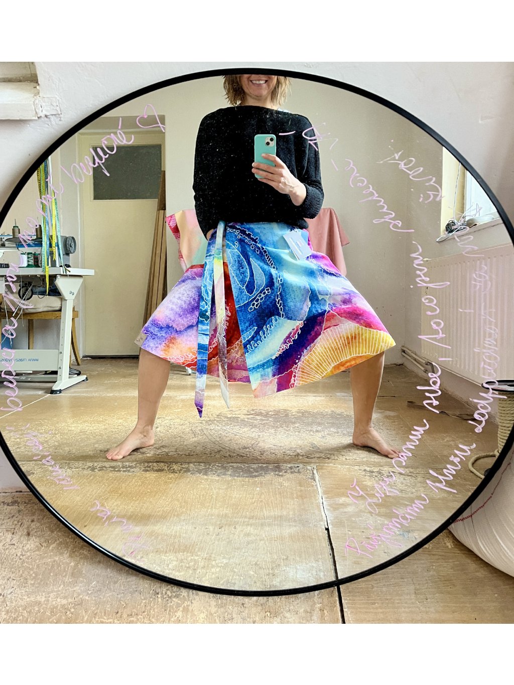 Sukně je vytvořena pro ženu, která miluje barvy, chce být vidět, je praktická, má ráda efektivitu a hebké materiály.