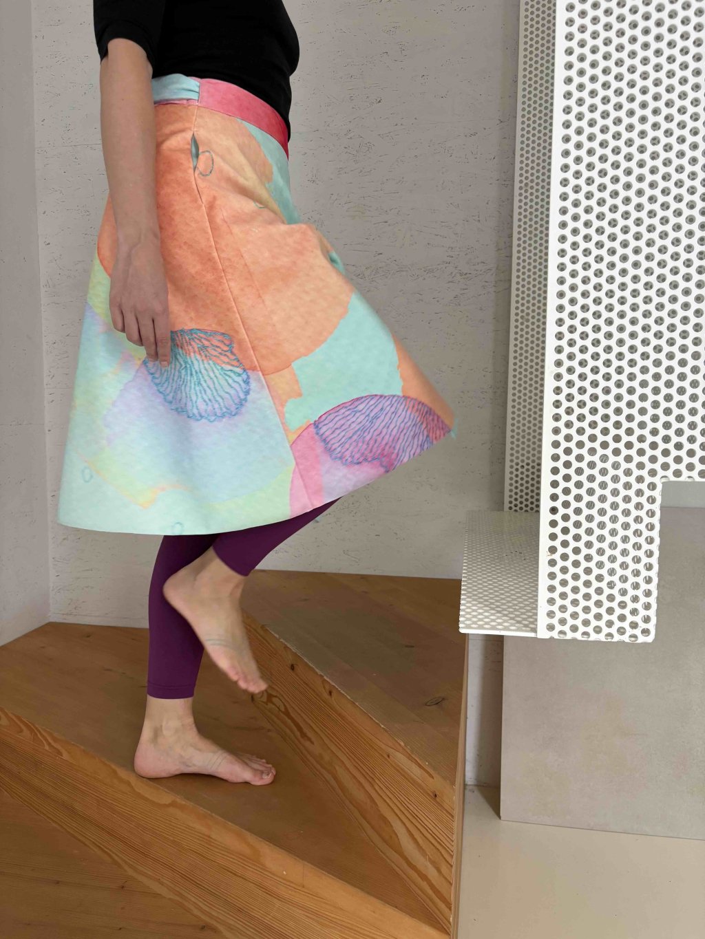 Sukně je vytvořena pro ženu, která miluje barvy, chce být vidět, je praktická, má ráda efektivitu a hebké materiály.